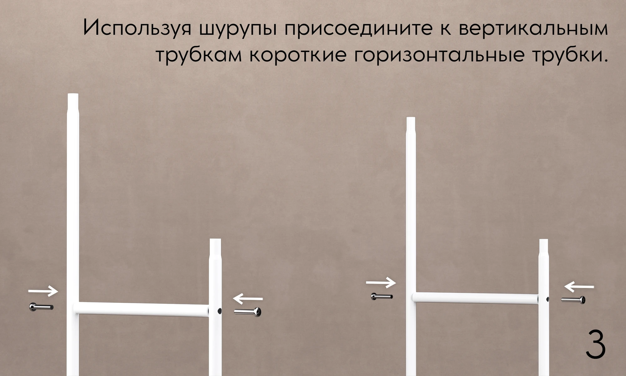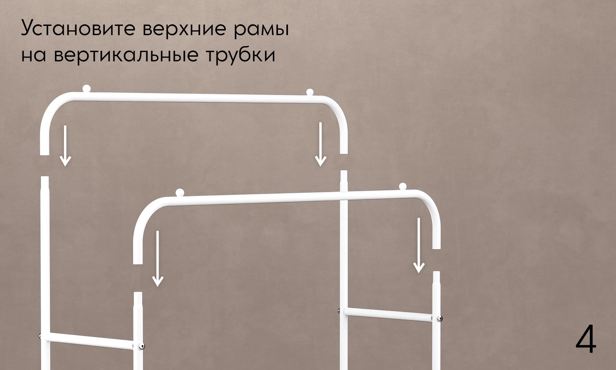 Две горизонтальные перекладины: можно разместить больше вещей или разделить их по типу.