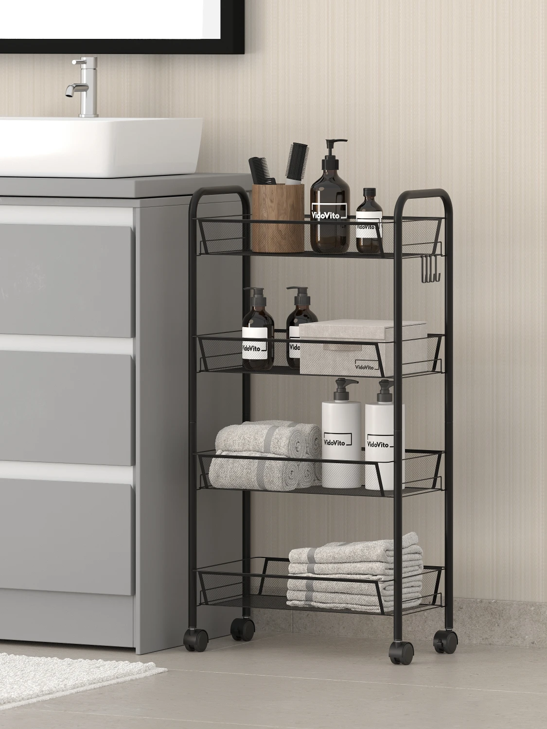 Узкая этажерка с корзинами